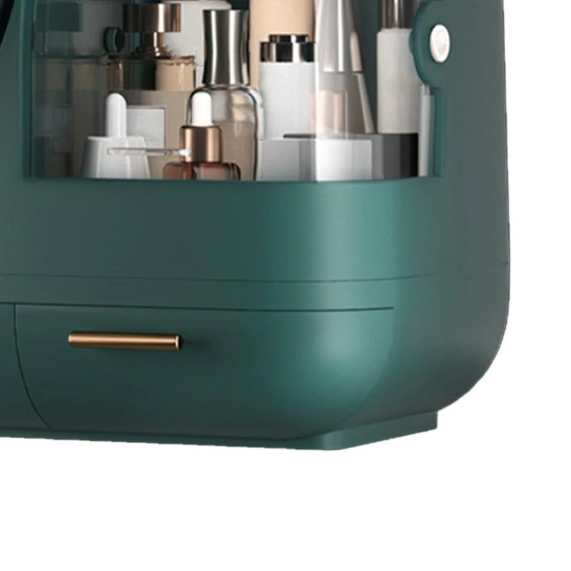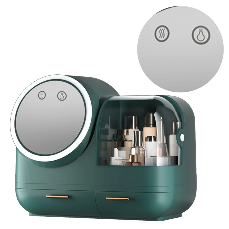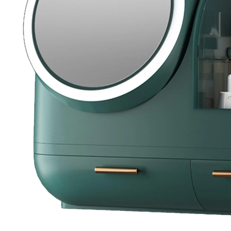 Le miroir haute définition avec éclairage LED ajustable permet une application de maquillage parfaite dans toutes les conditions de lumière. Le ventilateur intégré offre une brise douce pendant l’utilisation, évitant toute transpiration pendant votre routine. Les deux tiroirs pratiques permettent de ranger vos pinceaux, rouges à lèvres, crèmes et accessoires de beauté en toute sécurité.